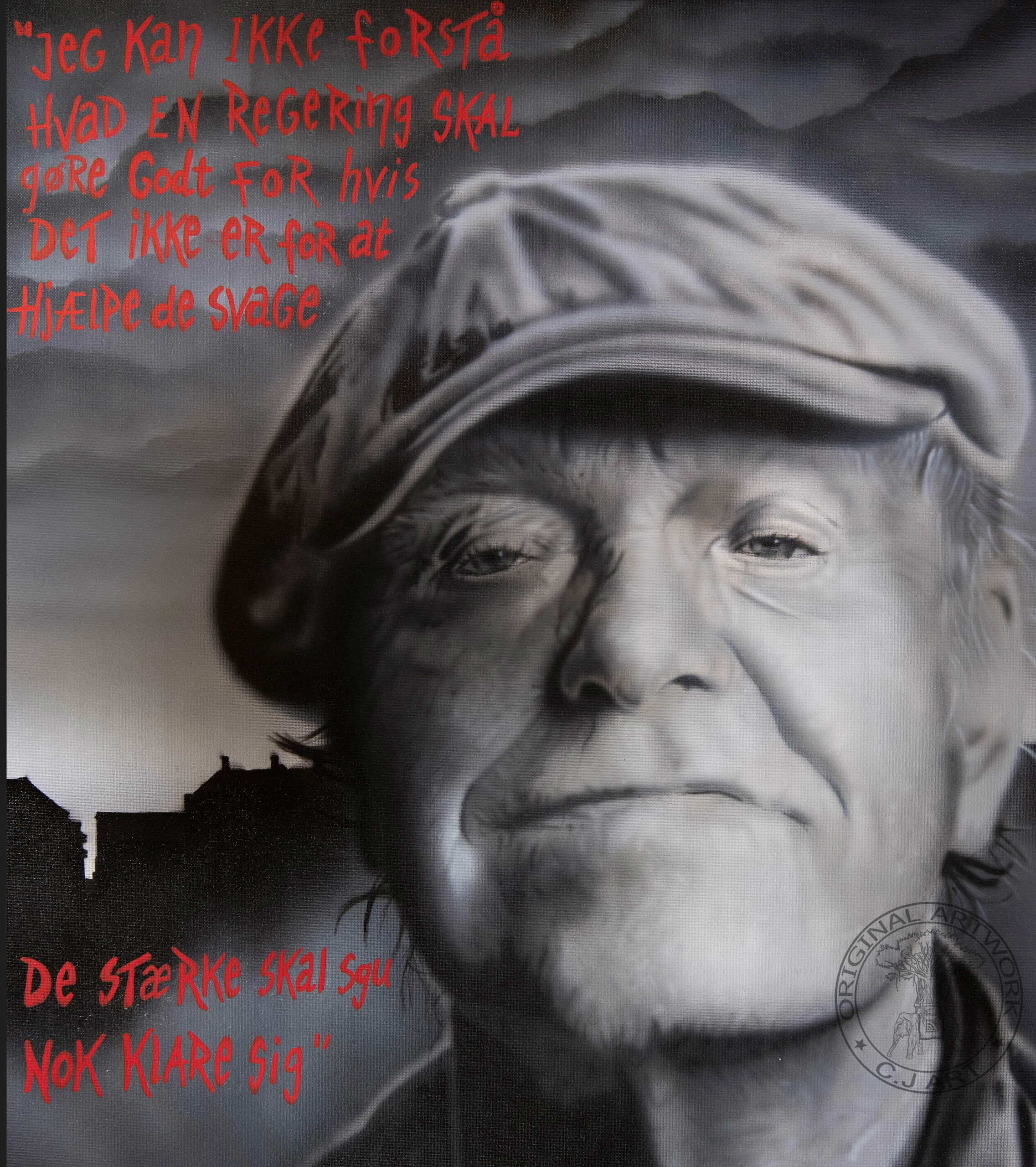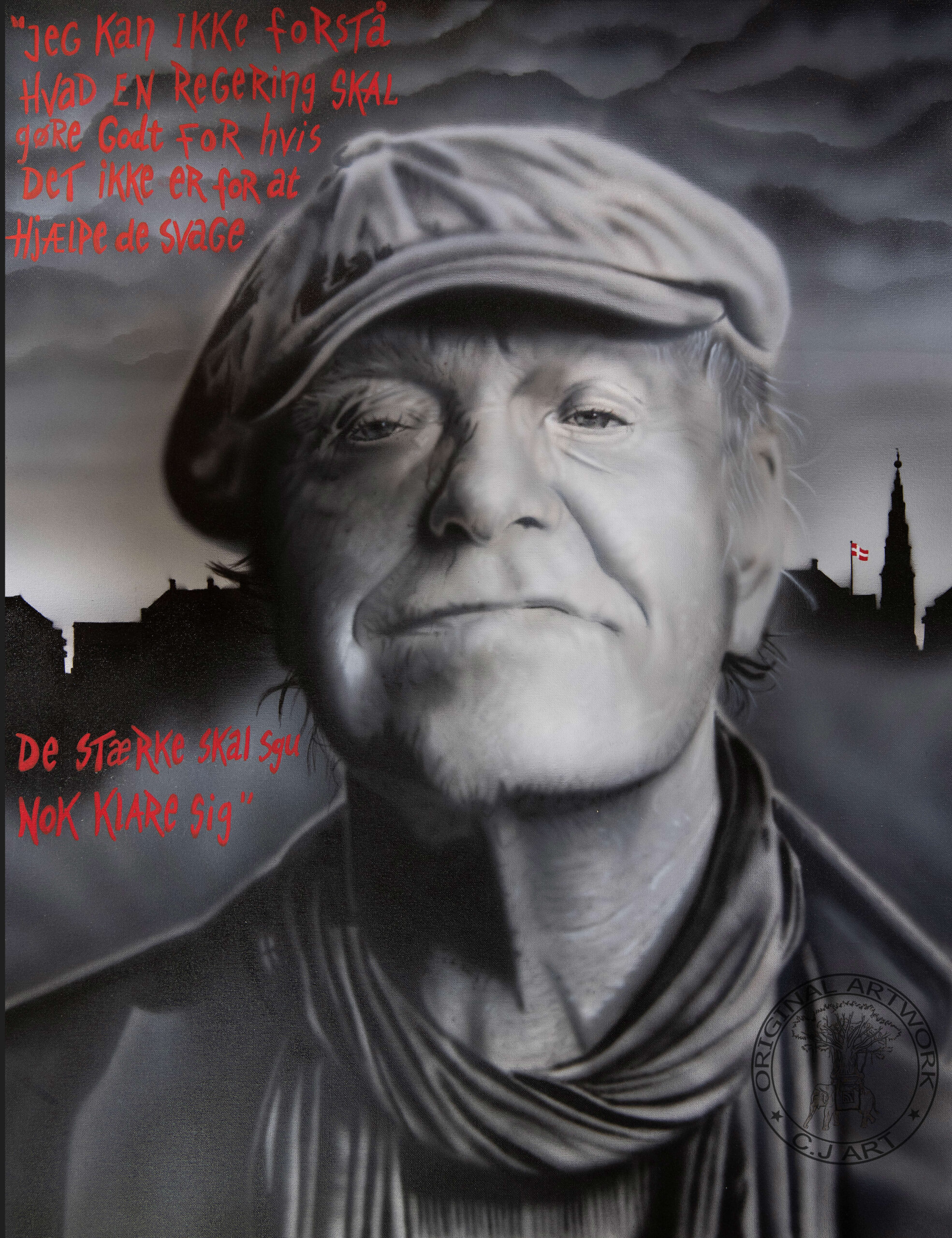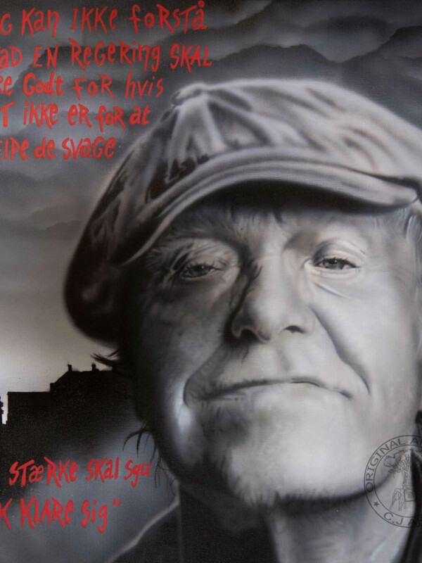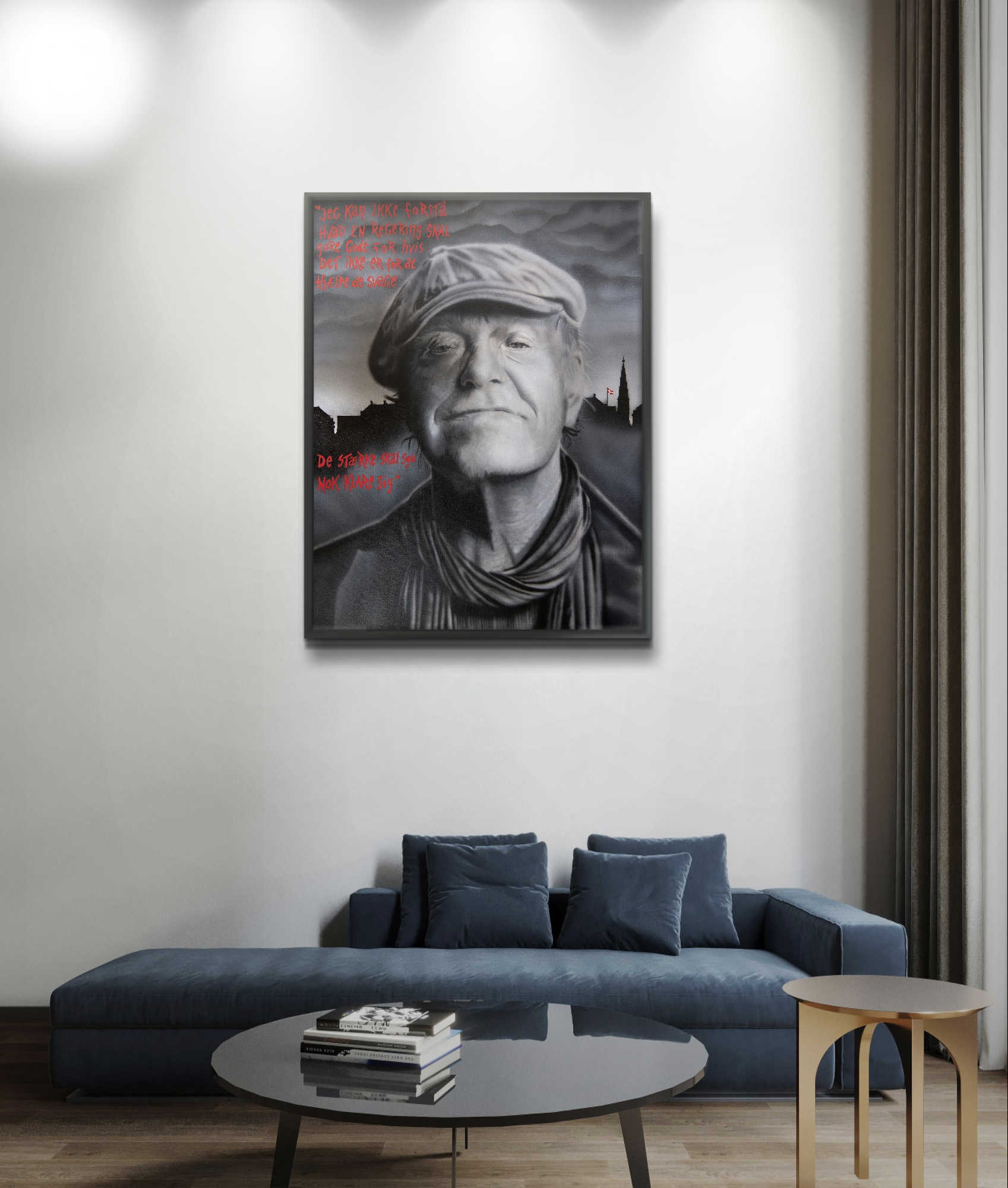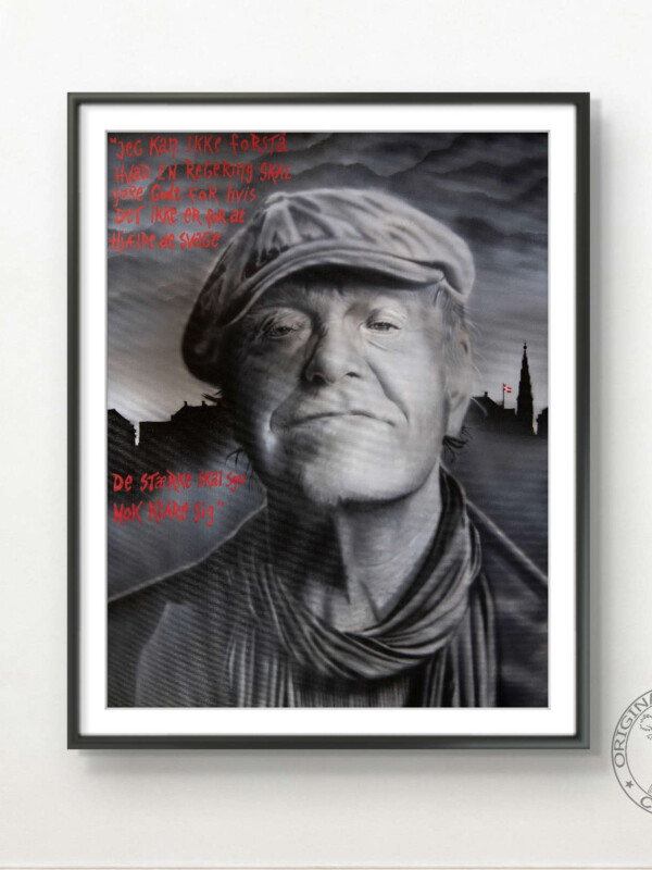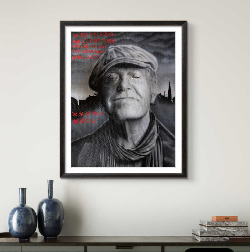 Et kunstprint af C J’s portræt af kim Larsen. Dette værk er spækket med detaljer og et citat der virkelig formår at holde legenden i live. Billedet tager dig med på en byvandring med Kim larsen gennem Christianshavn med udkig til vor frelser kirke. Et værk C J følte sig inspireret til at lave, kort tid efter Kim Larsen gik bort. Det er den perfekte tilføjelse til enhver musikelskers samling og vil helt sikkert blive en samtalestarter i ethvert rum, det hænger i.