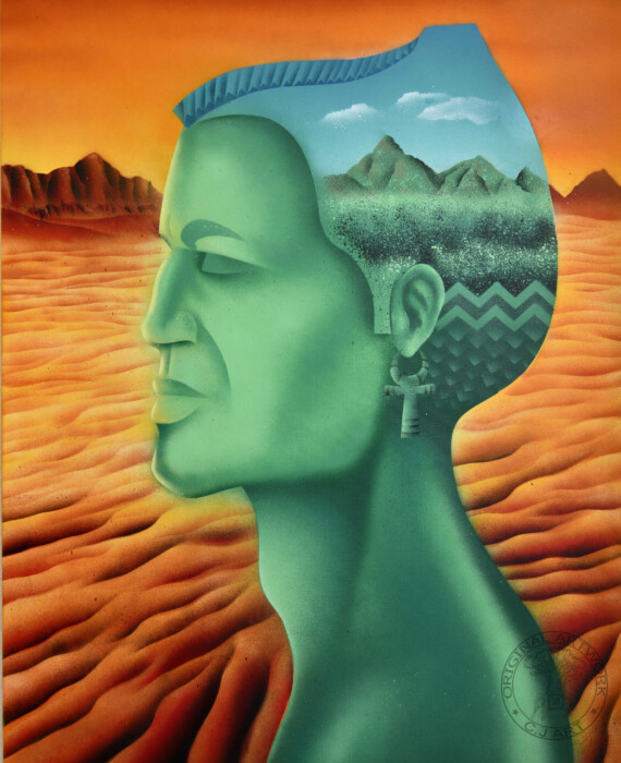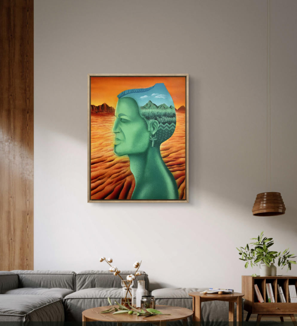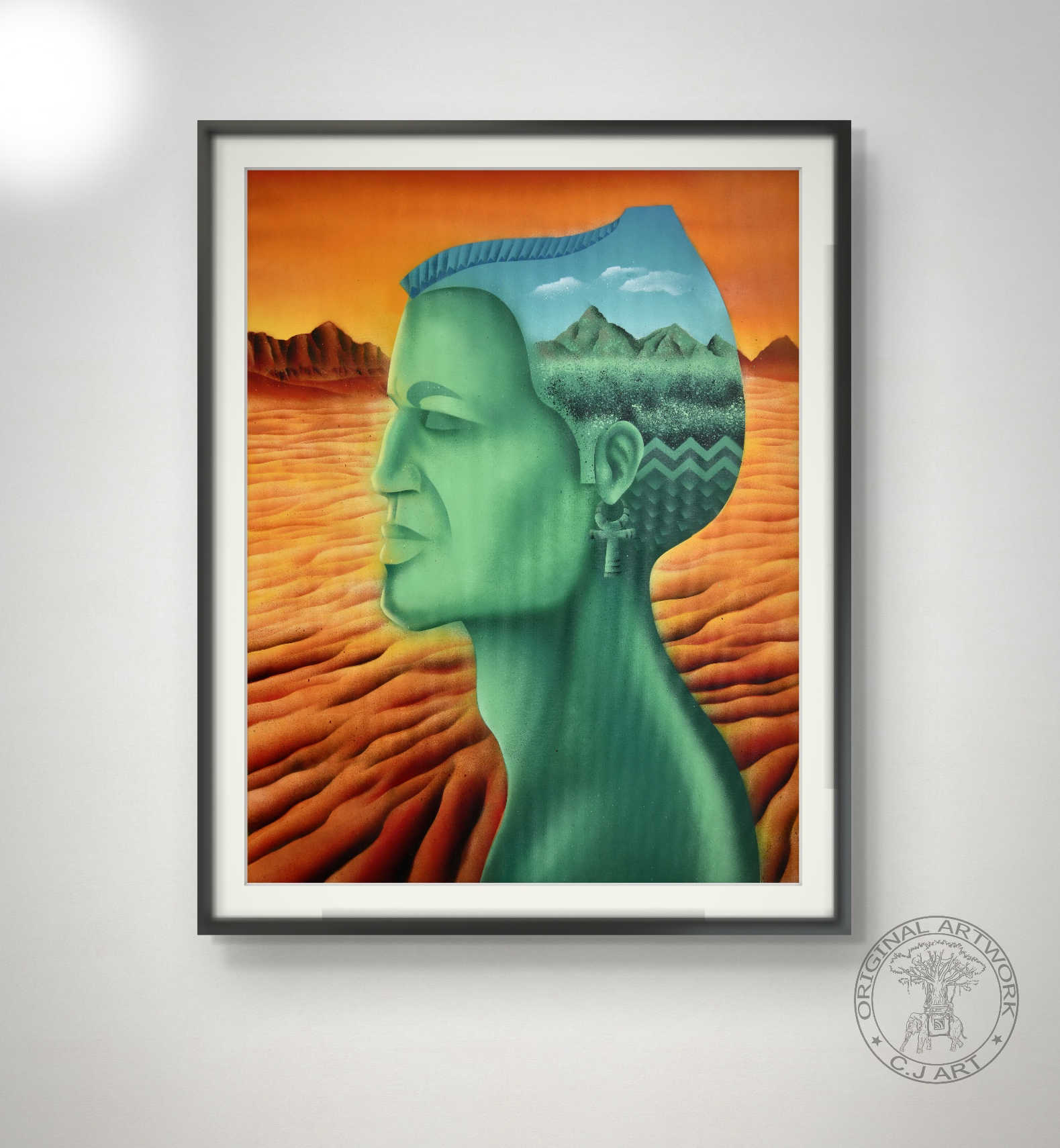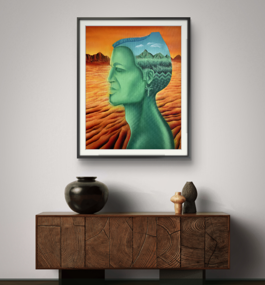 Et kunstprint af C.J’s originale maleri “Lifekeeper” – et stærkt og symbolmættet værk, der hylder livskraften midt i tørken.