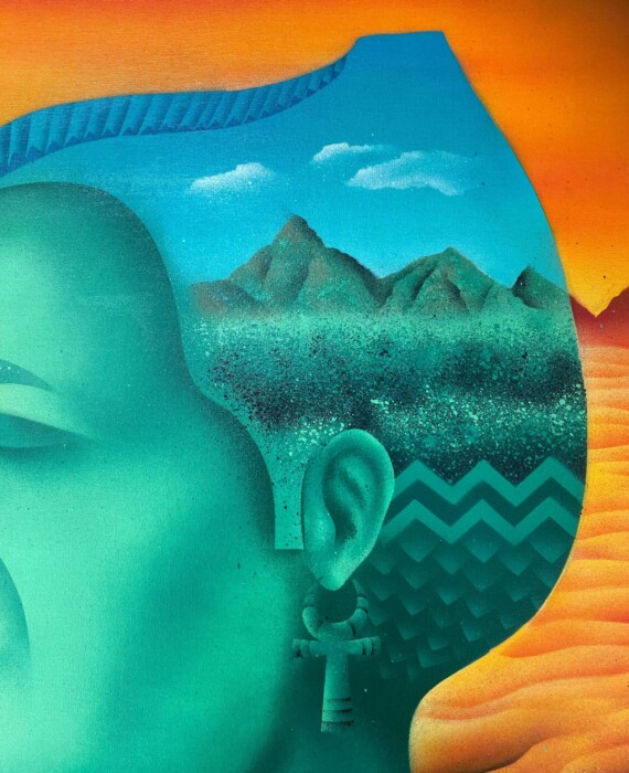 Motivet viser en mandlig skikkelse – et jordbundet, spirituelt væsen – som bringer liv til et goldt og udtørret landskab. Hvor han står, vokser frodigheden frem, og naturens cyklus vækkes til live. Han er bærer af det grønne, det livgivende – et symbol på styrke, fornyelse og håb. Værket udforsker kontrasten mellem liv og død, mellem forfald og vækst, og rummer en dyb refleksion over menneskets forbindelse til naturens kraft.
