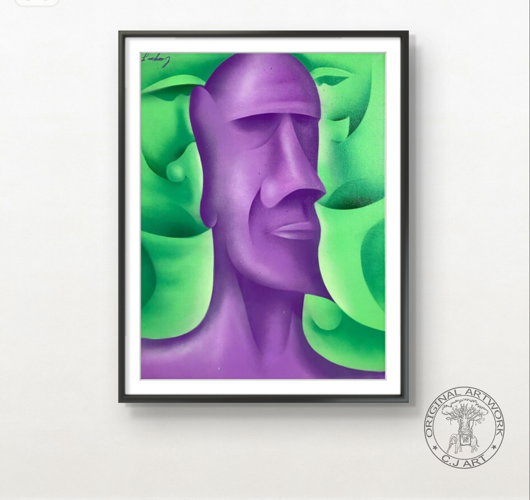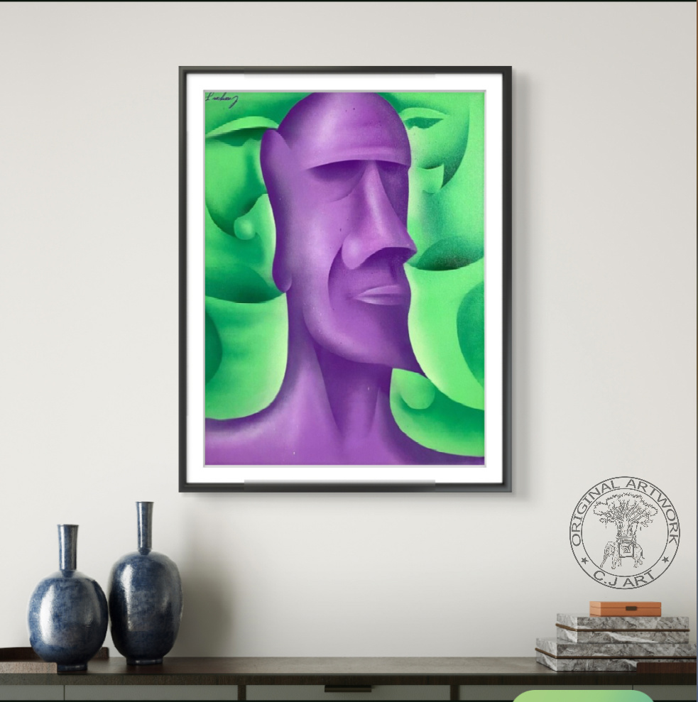 Kunstprint af C.J’s originale maleri “Two In One” – et fascinerende værk med flere ansigter og dyb symbolik. Dette kunstprint på lærred har et autentisk udseende, der næsten lader det forveksles med originalen.