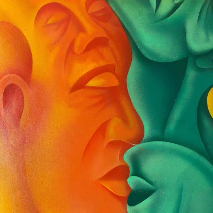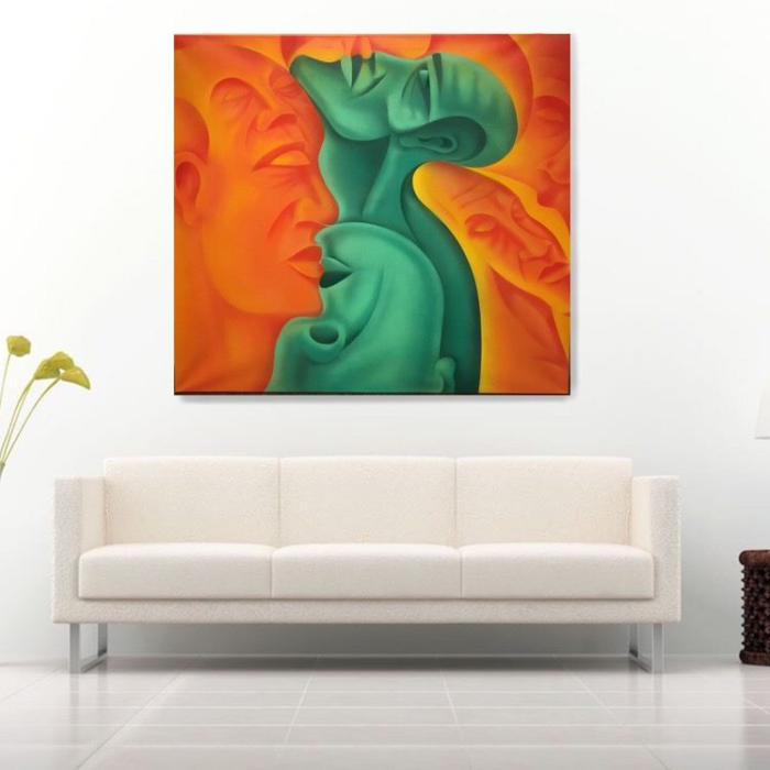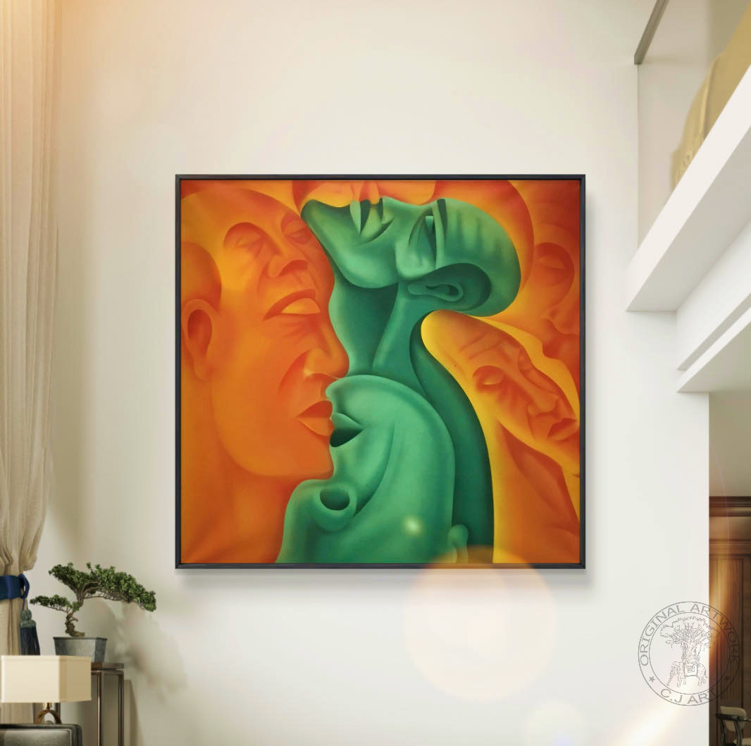Et kunstprint af C J’s orginale maleri “Face To Face”. Et interessant værk med mange ansigter. Dette kunstprint på lærred, har et autentisk udseende og kommer utrolig tæt på originalen. Med de mange former og farvekontraster, bliver der dannet omrids af ansigter, som omgiver hinanden. Her har Casper skabt et “surrealistisk” værk som er enigmatisk, bemærkelsesværdigt og vil hendrage opmærksomhed, i et hvert rum det hænger i.