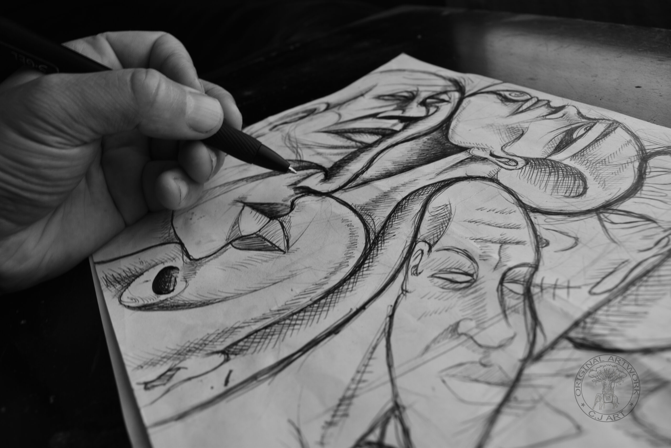 Hvis jeg skulle beskrive processen, så ville jeg sige at min underbevidsthed havde taget styrringen. Billedet flød bare ud af mig, helt automatisk og føltes som et puslespil, jeg ikke selv havde samlet. Den dag idag, kigger jeg stadig tilbage på dette værk med forundring.”
