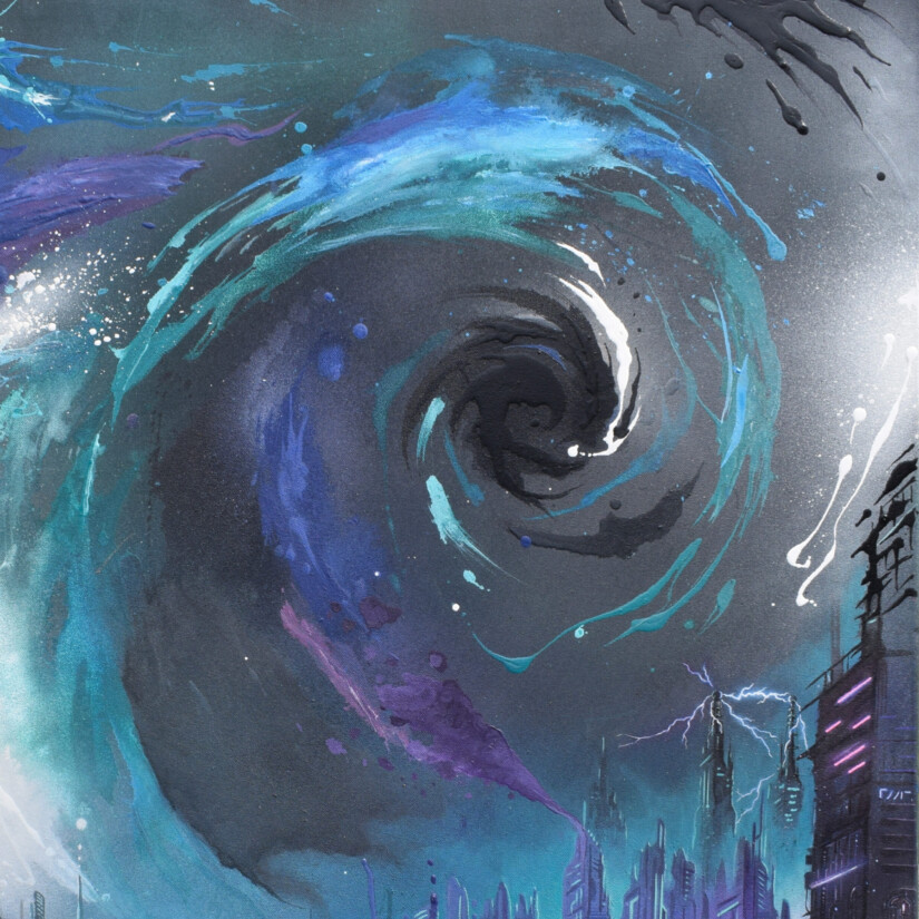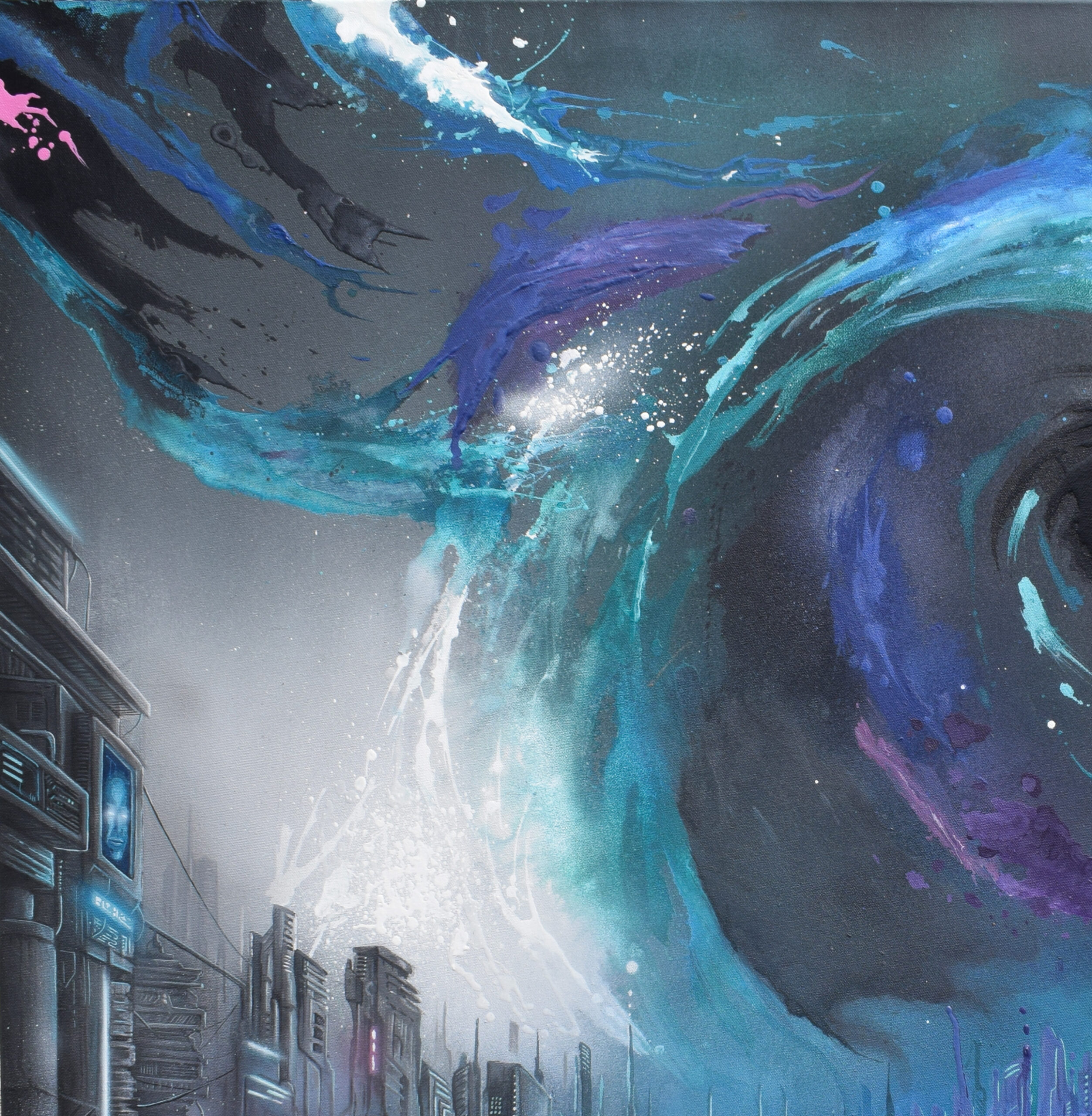 “Min intention var at skabe et maleri, hvor jeg ville give helt slip på mine forventninger og finde en balance mellem kaos og kontrol. Jeg ville Skabe et frirum, hvor jeg turde lade farverne flyde frit og samtidig forsøge at navigere, mellem det abstrakte og konkrete.