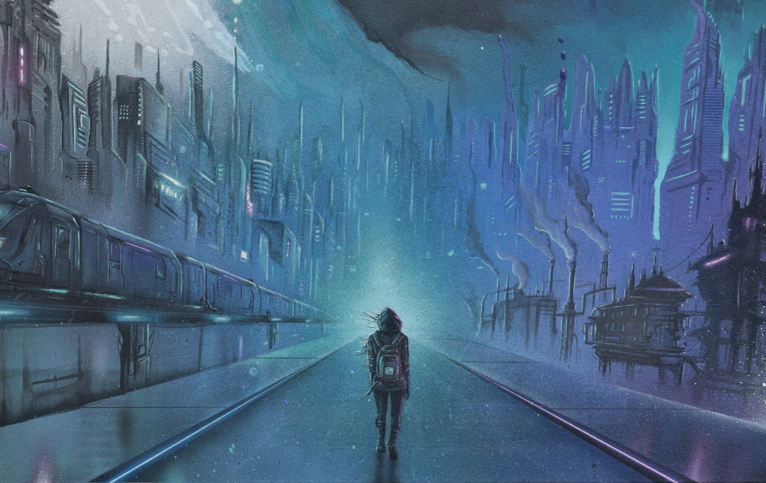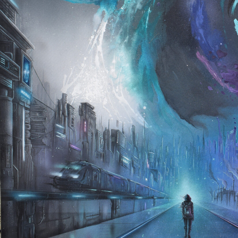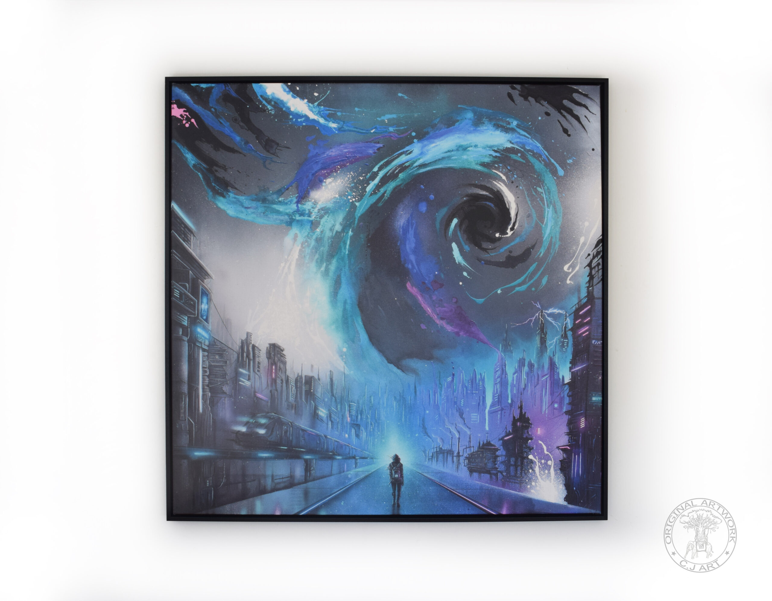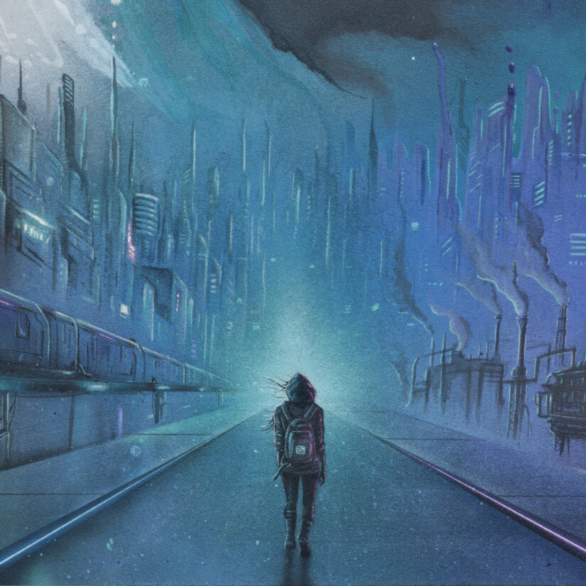 Alt hvad jeg laver af kunst, ser jeg som en del af min rejse mod selvopdagelse og personlige udvikling. Maleriet minder mig om, at rejsen starter altid med at tage det første skridt. Det kan godt kræve lidt mod, at følge sin mavefornemmelse. At træde ud af sin komfortzone og gå mod det ukendte, selvom det ikke altid giver mening. Uvisheden kan godt være svær at håndtere og som de fleste mennesker, har vi en trang til at ville kontrollere og planlægge alt, ned til mindste detalje. Uden at kende det endelige resultat, må man sommetider Give slip og stole på processen! Er så småt begyndt at indse, at dette ofte resultere i de værker som jeg er mest stolt af. ”
