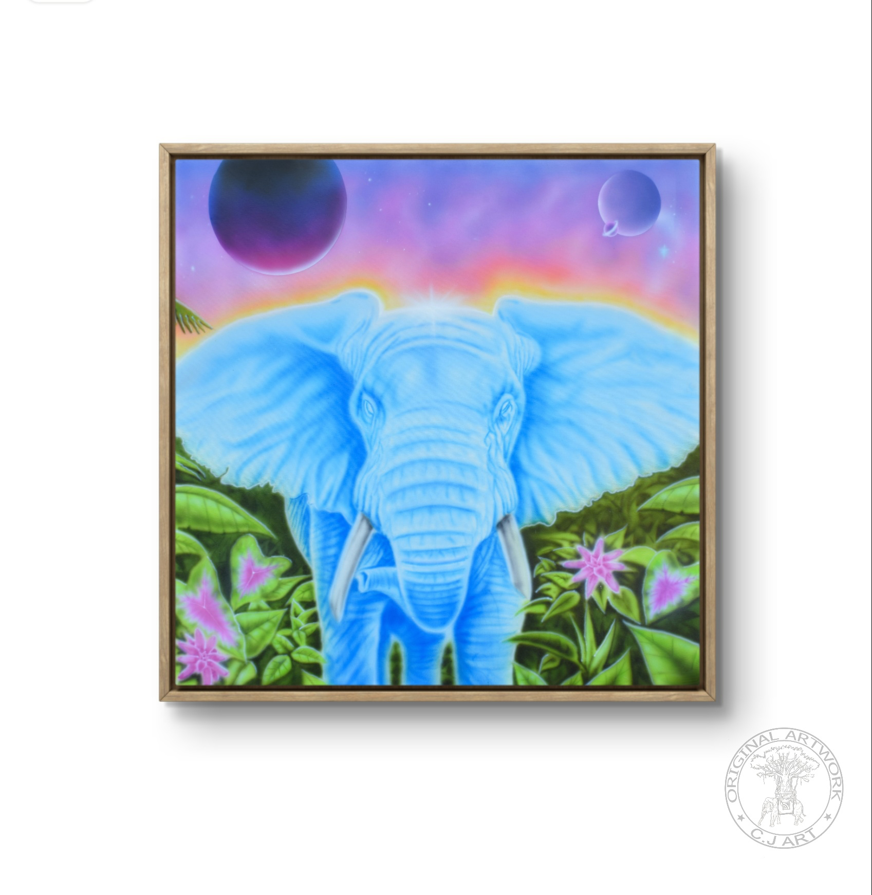 Bryd rammerne og slip fantasien løs med dette kunstprint af C J’s orginale maleri “Elephantasy”. Dette Kunstprint har et autentisk udseende og kan være svær at skelne fra originalen. Med sine levende farver er dette værk som et vindue til en fantasiverden af ubegrænsede muligheder.
