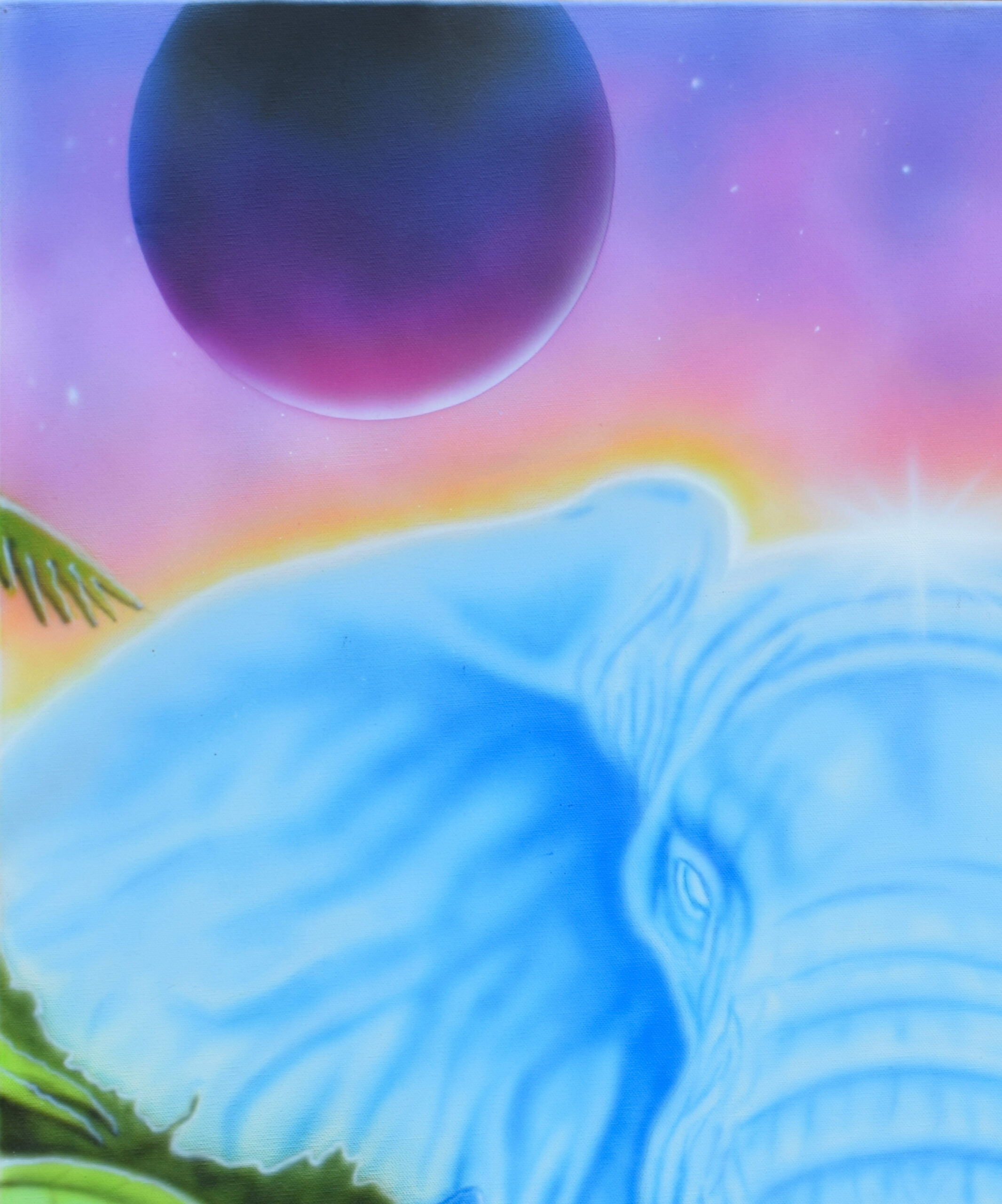 “Dette maleri var en gave til min kusine. Jeg ville lave et billede til hende som både var inspirerende og fantasivækkende. Et billede som kunne give et indblik i en magisk verden, uden begrænsninger, hvor alt kan lade sig gøre. Jeg kunne have malet en enhjørning eller en drage, men jeg valgte at male en blå elefant. Jeg ville gøre billedet forståeligt og jordnært men stadig give det et drømmeagtigt udtryk. Jeg mener fantasi og drømme er vigtige, og vil derfor ikke nødvendigvis opfatte det negativt, når det siges at man lever i en drømmeverden. Siden jeg kan huske har jeg altid været fascineret af både dyr og planter og ville forsøge dyrke den følelse man havde som barn, hvor alt var nyt og spændende. Man så verden med nye øjne af undren, og var i stand til at se magien, i noget så simpelt som at puste til en mælkebøtte. Det er desværre et syn som mange af os mister når vi bliver ældre og bliver kastet ud i at skulle lege “voksne”. Vi får travlt med at skulle nå alting at vi hverken har tid eller mulighed for stoppe op og se os omkring. Hvis vi fokusere for meget på fremtiden, mister vi magien i nuet.