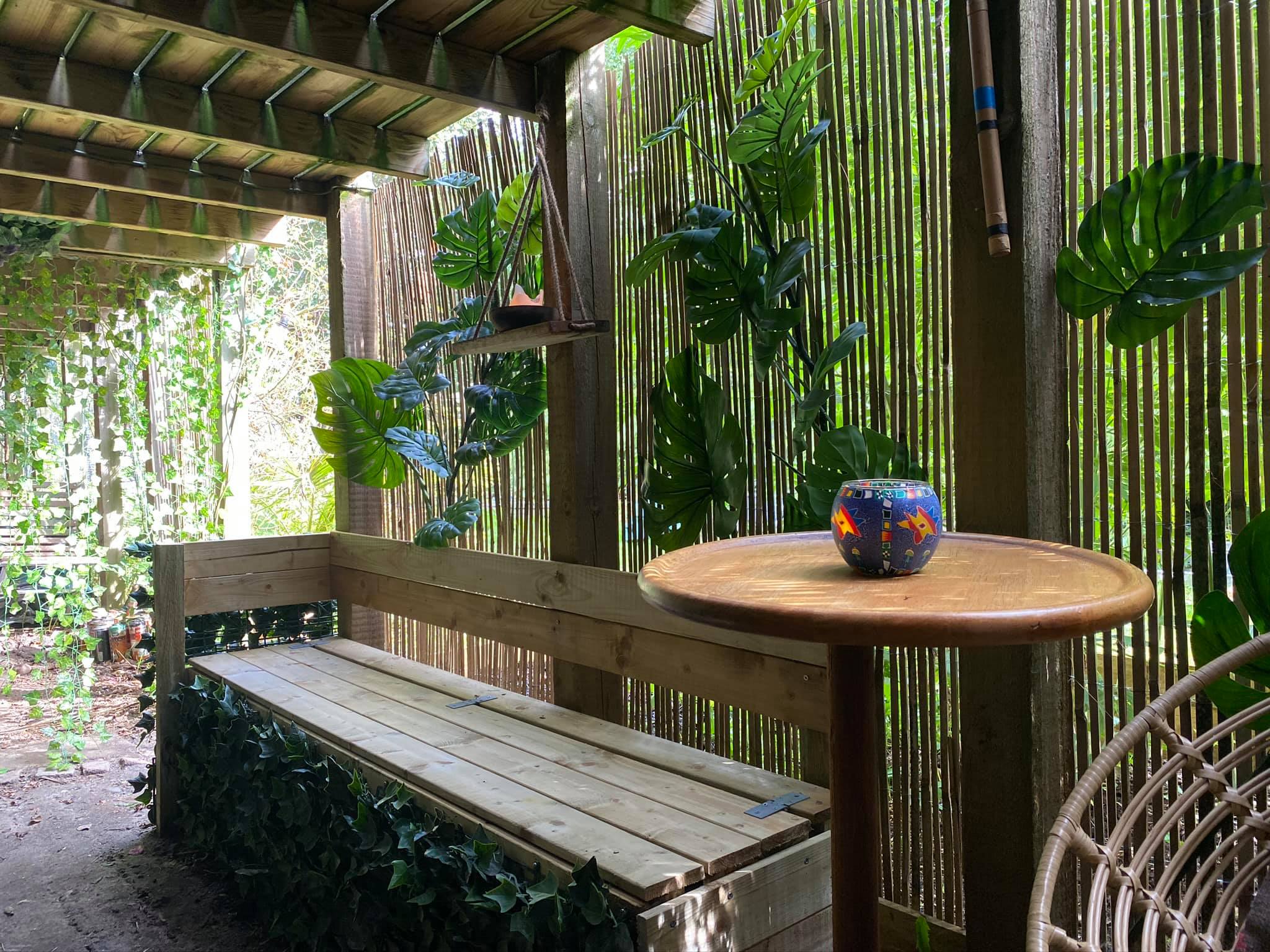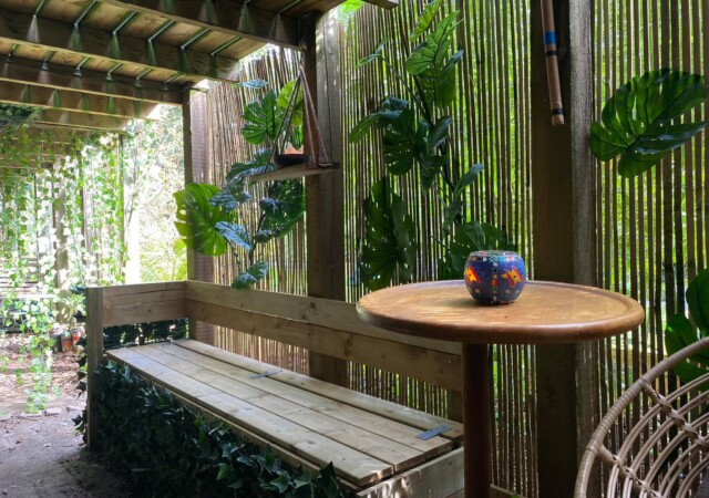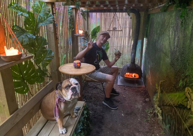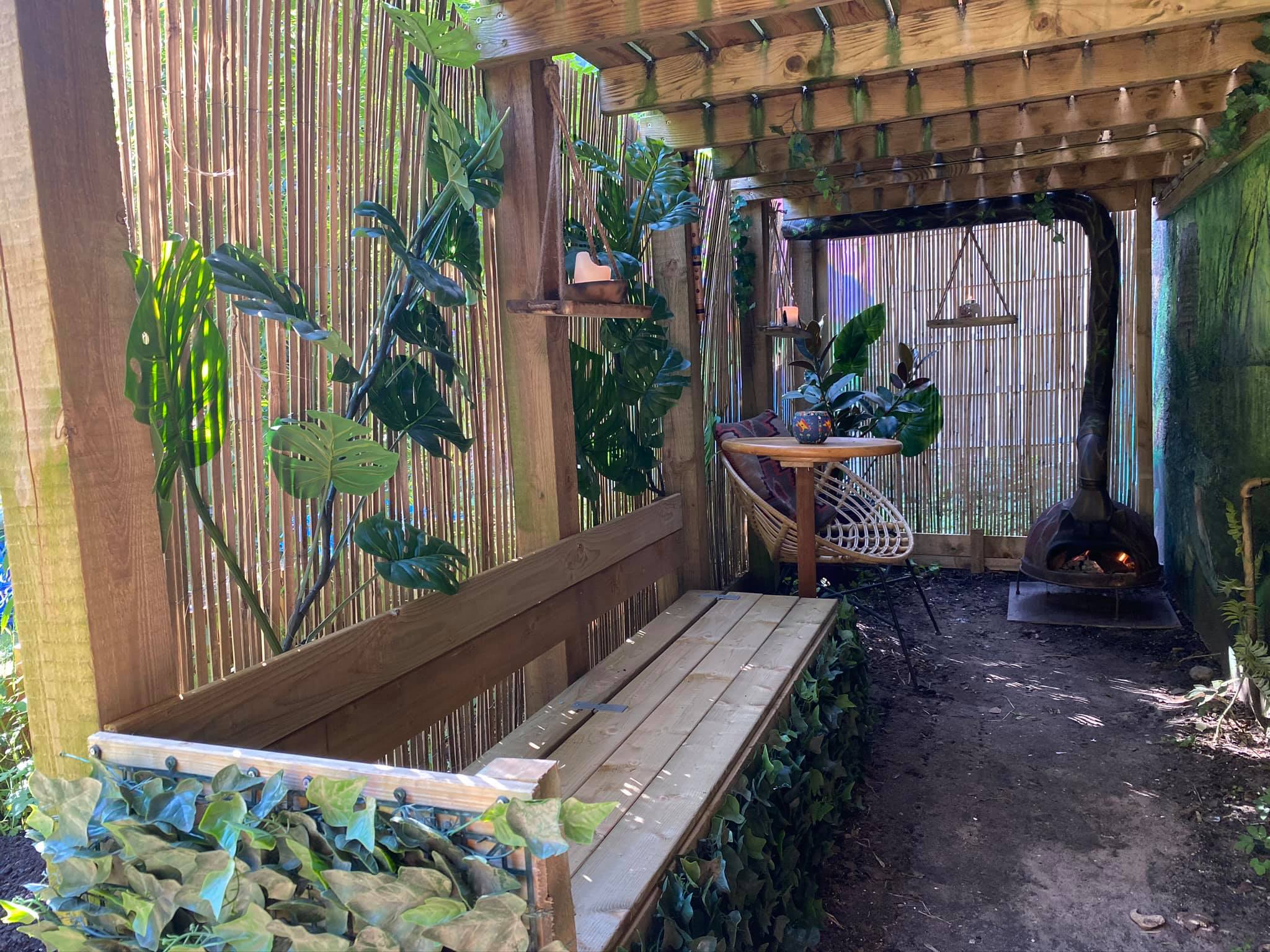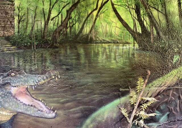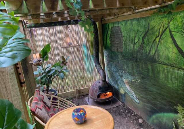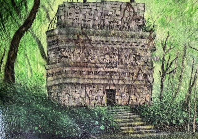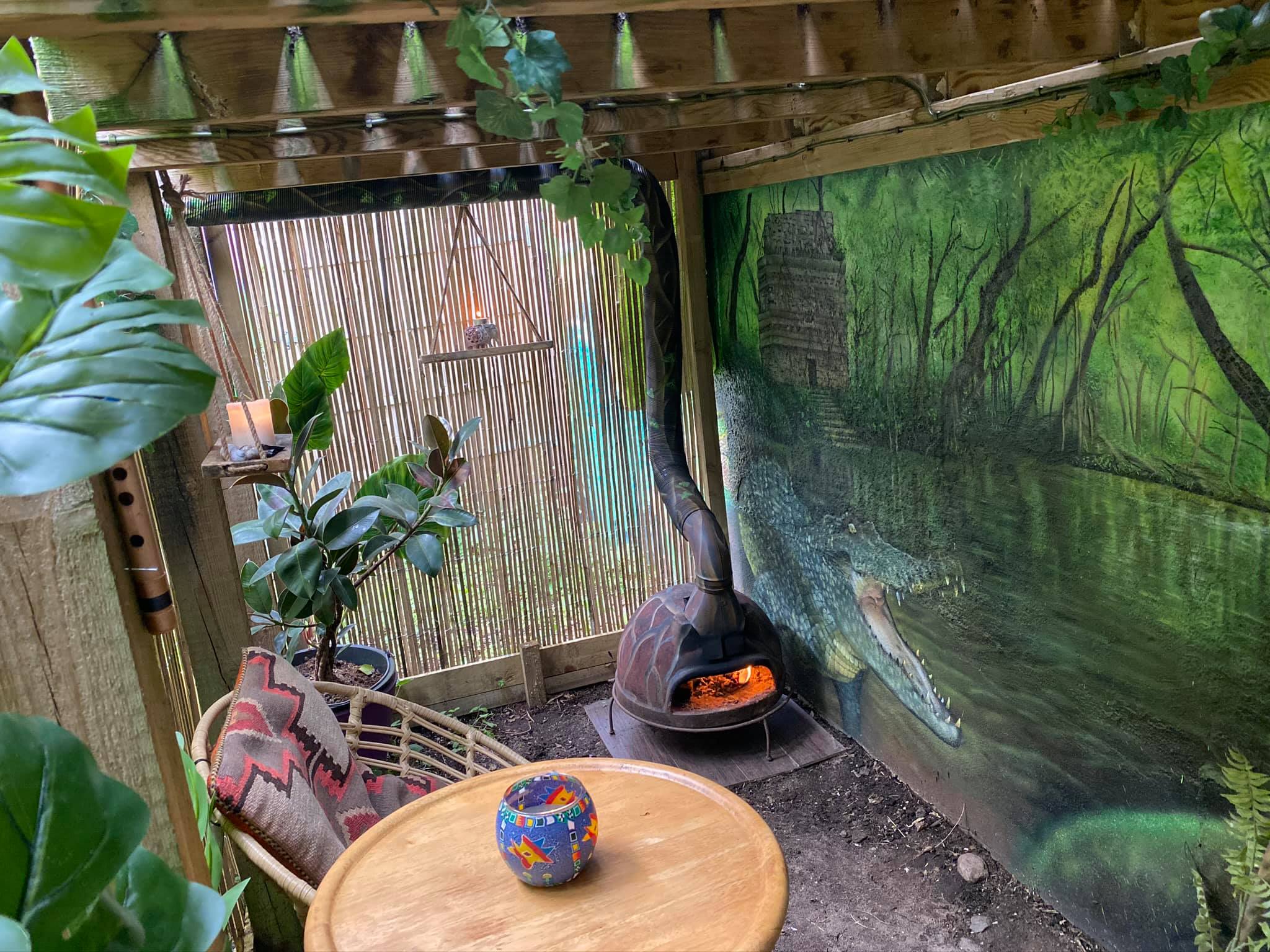 “”Jaguarens hule” var mit sommer projekt i sommeren 2020. Tænkte jeg ville prøve at gøre min kunst, til en lidt mere fordybende oplevelse. Værket i sig selv bærer også et budskab. Jaguaren som vogter indgangen til hulen, kan virke intimiderende, og er et kæmpe symbol i gammel Sydamerikansk kultur. Den repræsentere bl.a. styrken til at overkomme sin frygt. Frygten kan have mange ansigter. ikke alene frygten for at blive spist af en Jaguar eller bidt af en slange, men også frygten for hvad andre folk tænker, frygten for at fejle, frygten for ikke at være god nok eller frygt for forandring. Frygt kan være den største hindring vi har, for at udleve vores drømme. De bedste oplevelser i livet, kommer som regel med et mægtigt sus i maven inden og når det så er overstået, står man beriget med en fed oplevelse og tanken om hvad man egentlig var så bange for?”