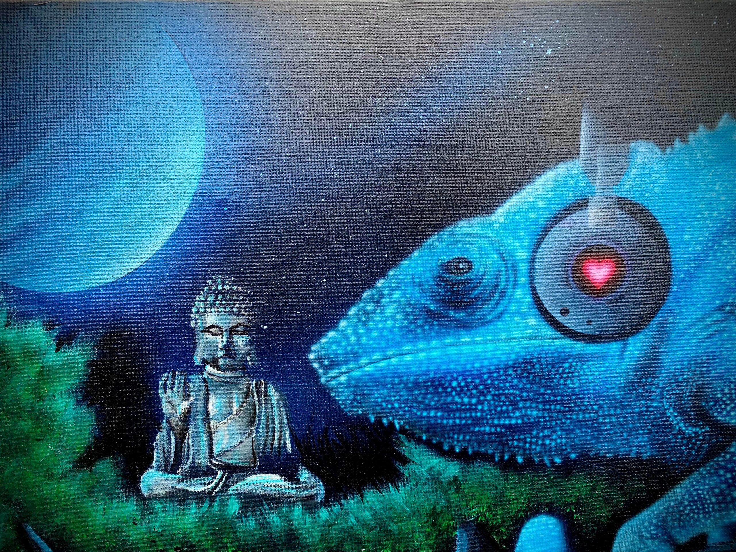 Maleriet udspringer af Caspers egne oplevelser i Indien, hvor han bevidnede kontrasten mellem det hellige og det ødelagte. Besøget ved et gammelt banyantræ blev en stærk oplevelse, en erkendelse af naturens uendelige styrke. Men samtidig stod han ansigt til ansigt med en ubalanceret virkelighed – en verden, hvor Gangesfloden, der skulle være hellig, var så forurenet, at den snarere lignede et offer for menneskets manglende forståelse af det hellige. Et sted, hvor symbolikken var vigtigere end selve essensen. Denne kontrast – mellem det hellige og det ødelagte, mellem tro og realitet, mellem menneskets destruktive vaner og naturens ubetingede kærlighed – er indkapslet i Benevolent Elephants. Det er ikke kun et billede, men en refleksion, en påmindelse. En fortælling om, at selv når vi har fejlet, selv når vi har ødelagt, findes der stadig kræfter, der vil os det godt. Spørgsmålet er blot: Er vi klar til at tage imod deres gave?
