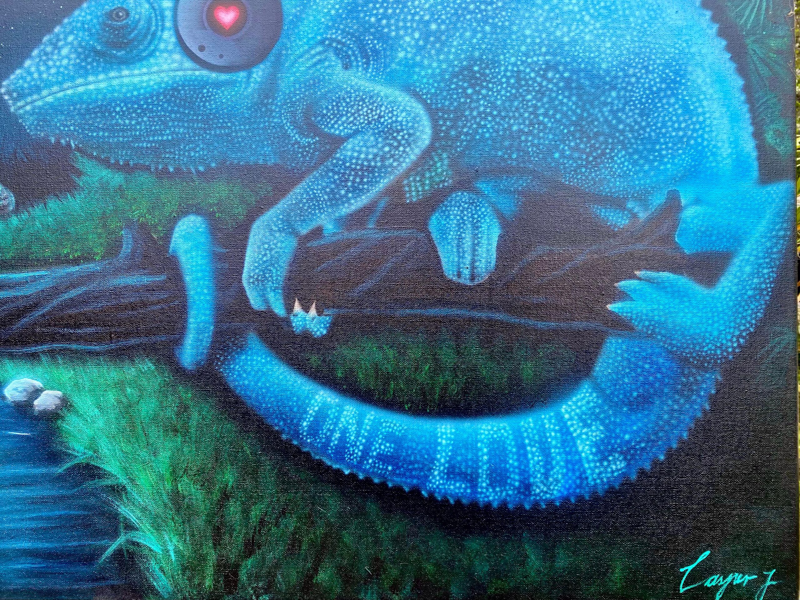 Casper Jørgensens monumentale værk Sol Invictus er en visuel og spirituel fortælling om lys, skabelse og den hellige balance mellem styrke og overgivelse. Værket består af tre lærreder på hver 1 x 1 meter, der kan arrangeres i forskellige formationer og dermed ændre historiens dynamik. Denne fleksibilitet gør Sol Invictus til mere end et statisk kunstværk – det er en levende fortælling, en invitation til refleksion over lyset i os selv og vores plads i en større kosmisk orden. Fødsel af en Sol I værkets centrale lærred ses en lysende, næsten guddommelig skikkelse, fanget i det øjeblik, hvor en sol fødes. Har du nogensinde set en sol blive født? Her tager dette fænomen form i et mystisk billede: En rund, plasmalignende kugle svæver midt i hovedet på skikkelse hvor et foster er indkapslet. Dets hjerte lyser som en stjerne, et spædt, men kraftfuldt tegn på den livskraft, der endnu kun er i sin spæde begyndelse. Dette symboliserer den gnist, vi alle bærer – en iboende kraft, der har potentialet til at skinne lige så klart som solen selv.