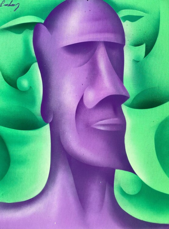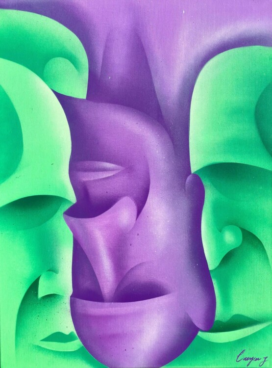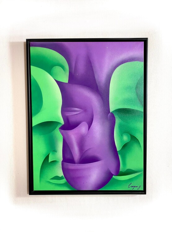 Face to Face markerer et afgørende skifte i Casper J’s kunstneriske praksis. Selvom det kun var hans anden skulptur, blev den startskuddet til en ny retning – teknisk, kunstnerisk og ikke mindst personligt. Skulpturen udspringer af et tidligere maleri med samme titel, skabt i en periode præget af krise og indre opløsning. Et tidspunkt, hvor gamle tankemønstre og vaner begyndte at smuldre, og hvor en ny forståelse pressede sig på – ikke som noget let eller behageligt, men som en nødvendighed.