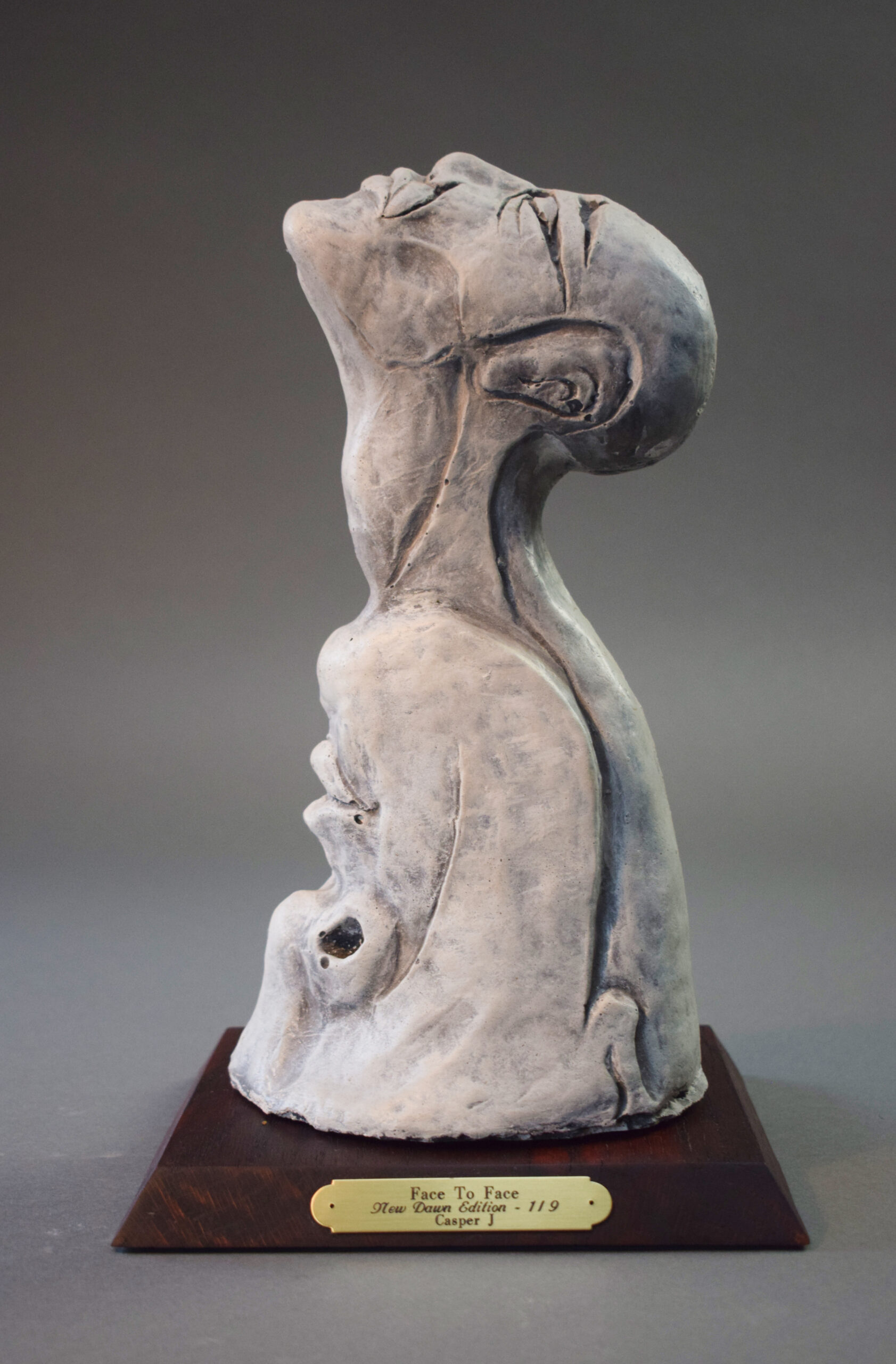 En limited edition skulptur af C J’s originale værk “Face to Face”. Inspireret af det originale maleri, men genskabt i fysisk form som et råt og ærligt udtryk.