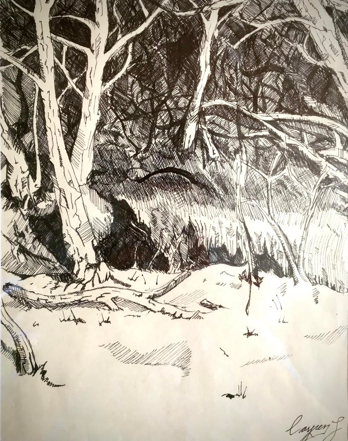 “Dark Forest”(Tegning lavet med en sort Sharpie tusch på A4 papir. fra Jun. 2011.)