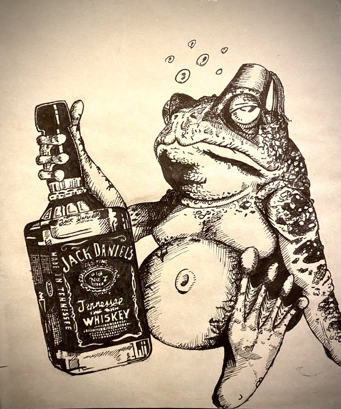 “Sprittudsen” (Tegning lavet med sort Sharpi tusch på A4 papir. fra maj 2011.)